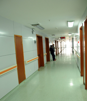 幾位患者在愛(ài)德中美合資杭州愛(ài)德醫(yī)院的住院區(qū)走廊上活動(dòng)。 |