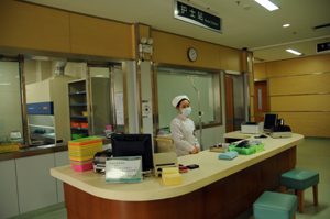 中美合資杭州愛(ài)德醫(yī)院的護(hù)士站前冷冷清清,沒(méi)有其他公立三級(jí)醫(yī)院患者人滿為患的場(chǎng)景。 |