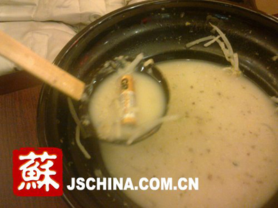 昨晚,賈女士和她老公在南京河西萬達廣場的“味千拉面”就餐。當二人快要就餐完畢的時候,賈女士在“味千拉面”的碗里發(fā)現(xiàn)了一節(jié)7號電池。電池由于長時間沸煮,外皮已經(jīng)開翹。賈女士當即找“味千拉面”店員理論,其中一名店員竟說:“小姐,其實也沒什么的,這個電池肯定是面煮好后掉進去的,不會跟著面一起煮的,所以問題不大,不會生病的!彪S后賈女士繼續(xù)找店長理論,最后“味千拉面”河西萬達店長和其公共事務部的一個負責人叫賈女士先去醫(yī)院檢查,等檢查結果出來后,再商量隨后的賠償事宜。 電池屬于強腐蝕性物質,一節(jié)1號電池爛在地里,能使1平方米的土壤永久失去利用價值;一粒紐扣電池可使600噸水受到污染,有毒物質還會進入人體內損壞神經(jīng)系統(tǒng)等,甚至可以致癌。此次“味千拉面電池門”事件,本網(wǎng)還將繼續(xù)關注。