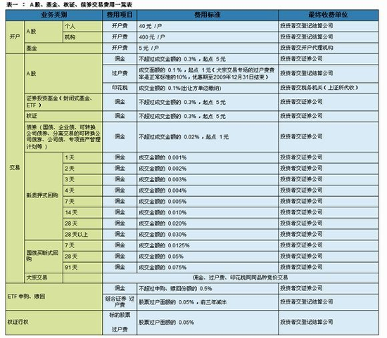 滬市證券交易及相關(guān)業(yè)務(wù)費用表