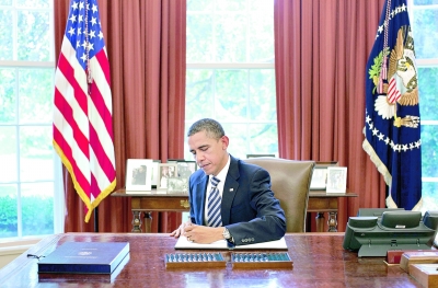 美國總統(tǒng)奧巴馬8月2日簽署了提高美國債務(wù)上限和削減赤字法案。至此,持續(xù)數(shù)月的美國債務(wù)上限和政府違約風(fēng)險(xiǎn)的討論將暫告一段落。 美國會(huì)參議院當(dāng)天以74比26的投票通過了提高美國債務(wù)上限和削減赤字法案。此前一天,眾議院以269比161的投票通過了這一法案。 圖為奧巴馬當(dāng)天在白宮橢圓形辦公室簽署提高美國債務(wù)上限和削減赤字法案。