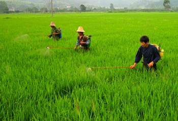 圖為農(nóng)民在打藥和葉面噴肥。徐仲庭 攝 |