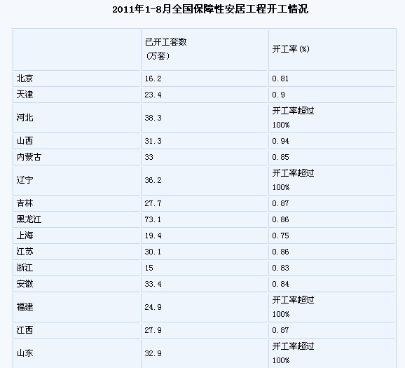 住建部:前8月全國(guó)保障房開工率86%
