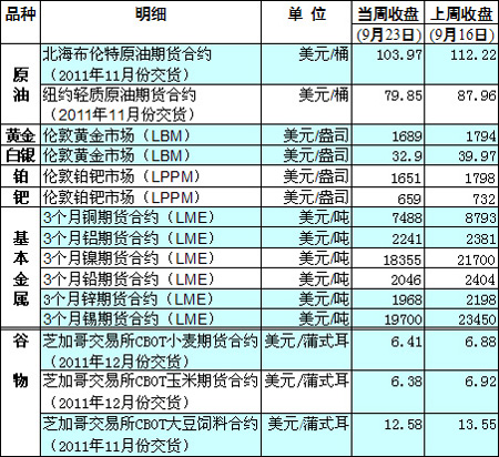 國(guó)際大宗商品期貨價(jià)格明細(xì)表[2011-09-26]