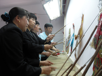 要拯救走“下坡路”的皮影戲,說來容易干起來難。近幾年,一些老藝人由于身體原因退出舞臺,年輕演員青黃不接,零散的兩三個劇團也處在癱瘓狀態(tài)。為挽救這種局面,2009年1月,趙田在退休干部葉建國的支持下,組建了遷安市皮影藝術協會,并創(chuàng)辦了謙御皮影藝術團,創(chuàng)建了遷安皮影活動基地。