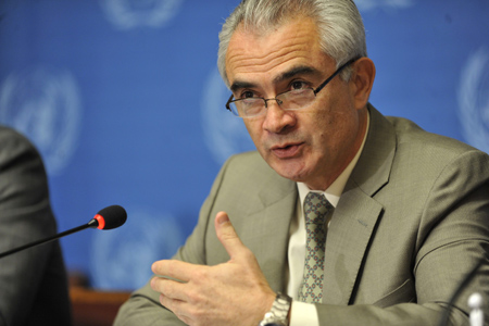10月19日,在瑞士日內(nèi)瓦萬國宮,國際勞工組織就業(yè)部執(zhí)行理事何塞·曼努埃爾·薩拉薩爾—希里納奇斯在新聞發(fā)布會(huì)上發(fā)言。 當(dāng)日,國際勞工組織召開發(fā)布會(huì),公布世界青年就業(yè)形勢最新情況,并指出日益嚴(yán)峻的就業(yè)形勢導(dǎo)致全球范圍內(nèi)的“恐懼”一代。