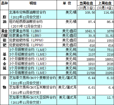 國(guó)際大宗商品期貨價(jià)格明細(xì)表[2011-10-24]