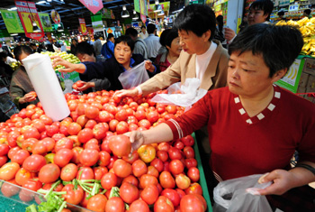 商務(wù)部25日公布的監(jiān)測數(shù)據(jù)顯示,食用農(nóng)產(chǎn)品價格繼續(xù)回落。截至上周(10月17日至23日),18種蔬菜平均批發(fā)價格比前一周下降2.5%,其中生菜、大白菜、白蘿卜降幅分別為8.8%、8.3%和8.3%,油菜、芹菜、西紅柿分別下降8.2%、8%和7.6%。雞蛋市場貨源充足,零售價格比前一周下降0.8%,降幅擴大0.4個百分點,比9月底下降1.6%。