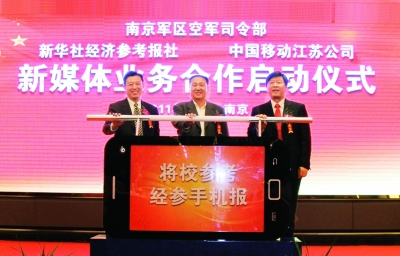 11月8日,南京軍區(qū)空軍通信系統(tǒng)、中國(guó)移動(dòng)通信集團(tuán)江蘇有限公司和新華社經(jīng)濟(jì)參考報(bào)社,在南京舉行三方新媒體業(yè)務(wù)合作啟動(dòng)儀式。
