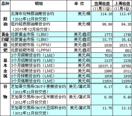國際大宗商品期貨價格明細表[2011-11-14]