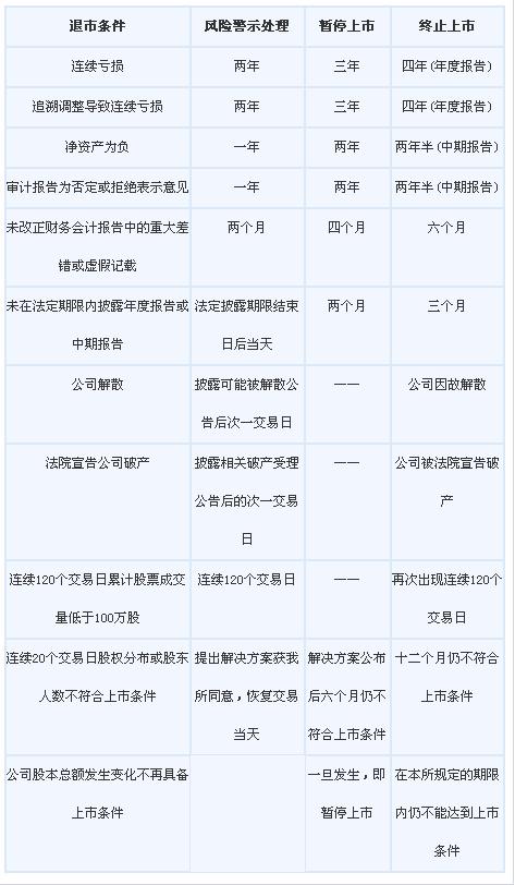 附表一:現(xiàn)行退市條件和退市程序表