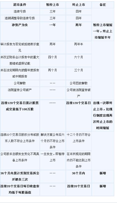 為避免創(chuàng)業(yè)板公司暫停上市以后通過各種調(diào)節(jié)財(cái)務(wù)指標(biāo)的方式規(guī)避退市,擬完善創(chuàng)業(yè)板公司恢復(fù)上市的審核標(biāo)準(zhǔn),對(duì)暫停上市公司恢復(fù)上市的財(cái)務(wù)標(biāo)準(zhǔn)參照首次公開發(fā)行和再融資的計(jì)算方法,以扣除非經(jīng)常性損益前后的凈利潤(rùn)孰低作為盈利判斷標(biāo)準(zhǔn)。同時(shí),不支持暫停上市公司通過借殼方式恢復(fù)上市。 縮短時(shí)間加快退市速度