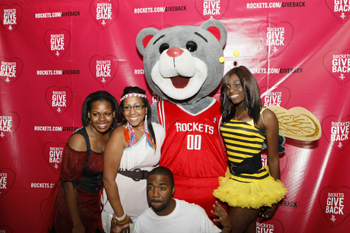 10月30日,休斯敦火箭隊(duì)拉拉隊(duì)員在休斯敦市中心的一家俱樂(lè)部舉辦“為孩子捐贈(zèng)食物”的萬(wàn)圣節(jié)慈善晚會(huì)。每一位盛裝打扮的觀眾將會(huì)捐出他們的門票錢,為當(dāng)?shù)匦枰暮⑼栀?zèng)食物。新華社發(fā)(宋穹
