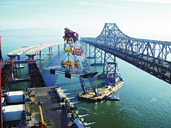 中交股份旗下振華重工提供全部鋼結(jié)構(gòu)、世界抗震等級最高的美國舊金山新海灣大橋 |