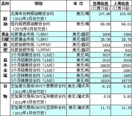 國(guó)際大宗商品期貨價(jià)格明細(xì)表[2011-12-26]