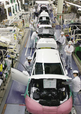 日本大企業(yè)的工廠基本都已實(shí)現(xiàn)高度自動(dòng)化,但是這些企業(yè)并未因此忽視技術(shù)工人的作用。例如,愛(ài)知縣豐田市的堤工廠是豐田汽車公司的主要裝配工廠,年生產(chǎn)轎車能力達(dá)40多萬(wàn)臺(tái)。盡管該工廠的車體鍛造、焊接、噴漆等流程基本實(shí)現(xiàn)無(wú)人化作業(yè),但在組裝階段仍安排熟練技術(shù)工人作業(yè)。正因力豐田汽車公司奉行“發(fā)揮‘人機(jī)’結(jié)合優(yōu)勢(shì)”的原則,才得以實(shí)現(xiàn)了高效率、低成本、高質(zhì)量生產(chǎn),并在過(guò)去30多年一直保持日本汽車市場(chǎng)較高占有率。