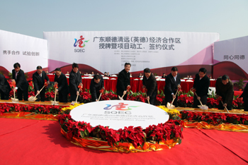 12月24日,廣東順德清遠(yuǎn)(英德)經(jīng)濟(jì)合作區(qū)授牌暨項(xiàng)目動工簽約儀式在清遠(yuǎn)英德市隆重舉行。中共中央政治局委員、廣東省委書記汪洋,省人大常委會主任歐廣源,省委副書記、代省長朱小丹等出席儀式。汪洋、朱小丹分別向清遠(yuǎn)市和順德區(qū)負(fù)責(zé)同志頒授廣東順德清遠(yuǎn)(英德)經(jīng)濟(jì)合作區(qū)黨工委牌匾和廣東順德清遠(yuǎn)(英德)經(jīng)濟(jì)合作區(qū)管委會牌匾。