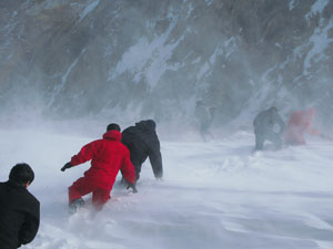 西部管道公司員工在西氣東輸二線果子溝段巡線時(shí)遭暴風(fēng)雪。