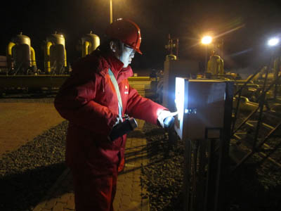 中亞天然氣管道員工在現(xiàn)場(chǎng)巡檢。