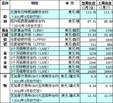 國(guó)際大宗商品期貨價(jià)格明細(xì)表[2012-02-06]