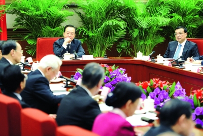 這是2月10日,溫家寶聽(tīng)取各民主黨派、全國(guó)工商聯(lián)負(fù)責(zé)人和無(wú)黨派人士對(duì)《政府工作報(bào)告(征求意見(jiàn)稿)》的意見(jiàn)和建議。