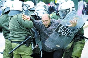 希臘今晨通過第二輪救援貸款協(xié)議 數(shù)萬民眾抗議示威