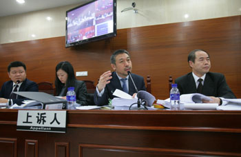 2月29日,蘋果公司與深圳唯冠iPad商標(biāo)糾紛案二審在廣東省高級人民法院開庭,圖為上訴人律師在庭審上做陳述。記者