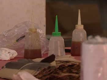 現(xiàn)場:黃褐色膠水散發(fā)著刺鼻氣味