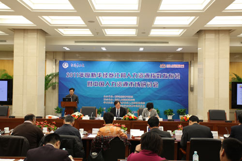 圖為“中國(guó)15個(gè)城市4個(gè)重點(diǎn)行業(yè)新華經(jīng)參仕邦人力資源指數(shù)年度報(bào)告”發(fā)布會(huì)現(xiàn)場(chǎng)。 |