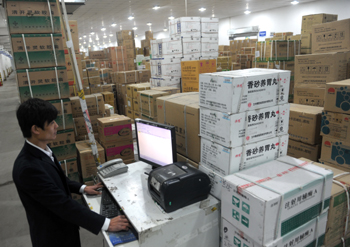 甘肅省藥品應急保障動員中心日前在蘭州成立。這個機構(gòu)依靠甘肅省大型醫(yī)藥物流企業(yè)建成8000平方米的倉儲中心,能夠為重大自然災害救援緊急提供至少價值100萬元藥品的應急保障。 圖為甘肅省藥品應急保障動員中心工作人員閆積平在倉儲中心查看藥品庫存。新華社記者 聶建江/攝 |
