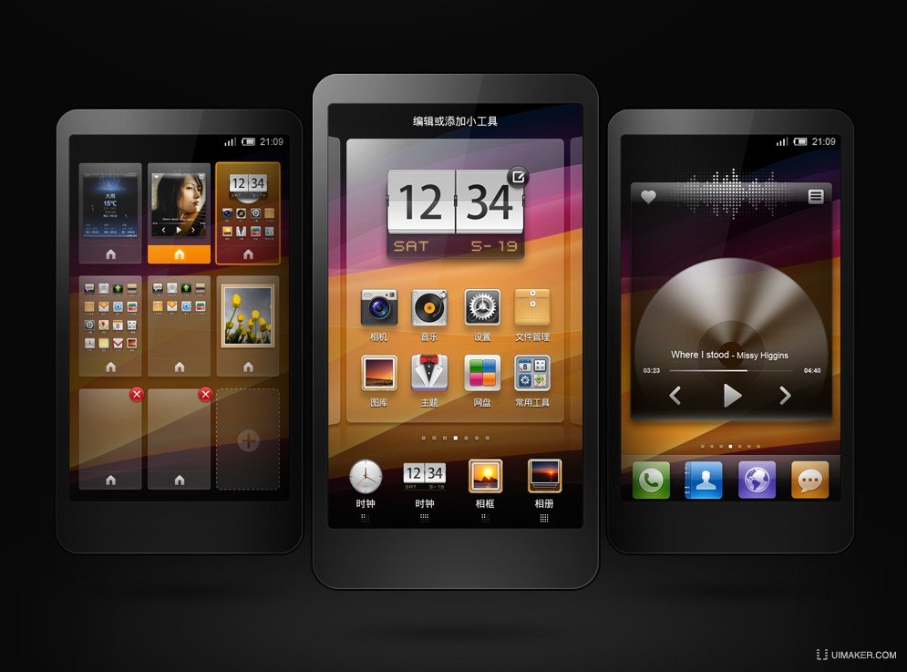 在界面上,tita多桌面切換和默認首頁桌面切換等功能,還在默認桌面正中提供了一個簡約設計的原色模擬時鐘。不過有細心的網友指出,這些外觀UI設計幾乎是原樣照抄了小米公司的MIUI。