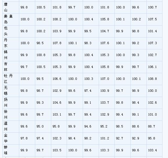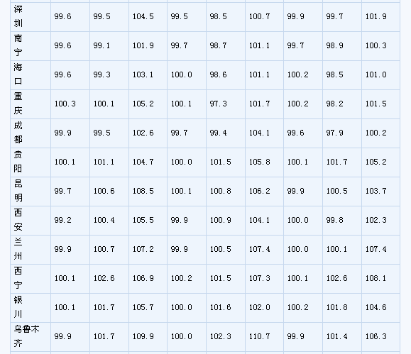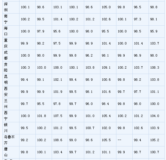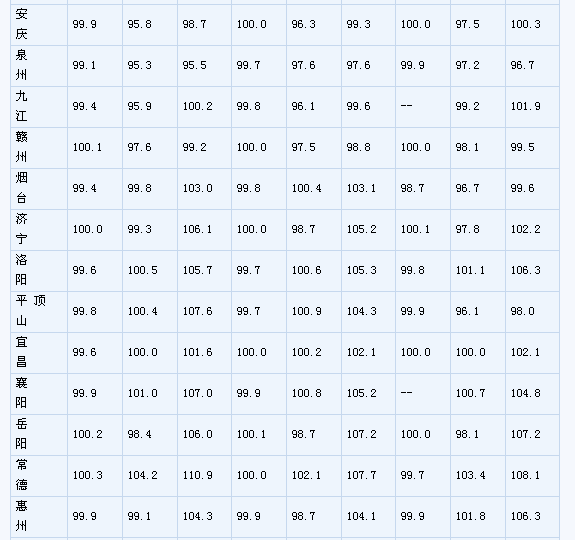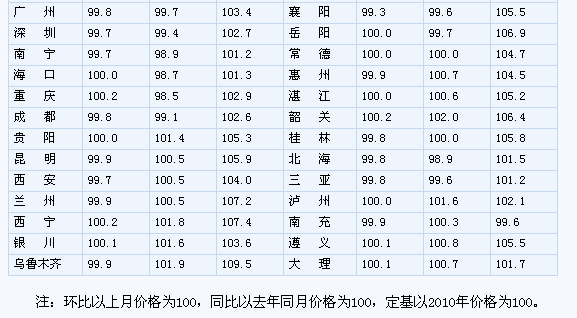 (一)與上月相比,70個(gè)大中城市中,價(jià)格下降的城市有46個(gè),持平的城市有16個(gè),上漲的城市有8個(gè)。環(huán)比價(jià)格上漲的城市中,漲幅均未超過0.2%。 (二)與去年同月相比,70個(gè)大中城市中,價(jià)格下降的城市有38個(gè),比2月份增加了11個(gè);持平的城市有3個(gè),上漲的城市有29個(gè)。3月份,同比漲幅比2月份回落的城市有21個(gè),漲幅均未超過2.1%。