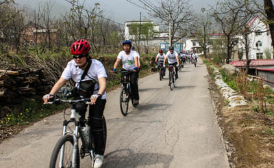 4月22日是世界地球日,當(dāng)天,歐盟輪值主席國(guó)丹麥聯(lián)合歐盟各國(guó)使節(jié)在北京組織自行車騎行活動(dòng),以環(huán)保的名義推廣綠色出行方式和綠色解決方案,來(lái)自歐盟的駐華大使、媒體、企業(yè)約150人參加此次活動(dòng)。 丹麥駐華大使裴德盛說(shuō),“有效的環(huán)境政策能夠幫助解決關(guān)鍵性的環(huán)境問(wèn)題,丹麥和歐盟的經(jīng)驗(yàn)值得中國(guó)借鑒來(lái)應(yīng)對(duì)這項(xiàng)挑戰(zhàn)!鄙蠄D為裴德盛在活動(dòng)中講話,下圖為騎行活動(dòng)在北京近郊舉行。(丹麥駐華使館供圖)