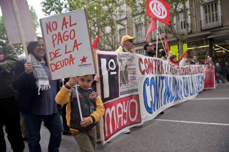 5月1日,在西班牙馬德里,一名兒童參加游行。 當日,西班牙首都馬德里舉行大規(guī)模群眾游行集會,抗議政府削減教育及醫(yī)療保障開支,并呼吁政府加大力度解決就業(yè)問題,數(shù)萬名群眾參與集會。受經濟危機影響,西班牙政府采取一系列緊縮措施,削減財政支出,以減少赤字。
