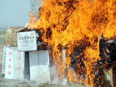 新疆日前在烏魯木齊市西山大浦溝垃圾場(chǎng)集中銷毀鉻超標(biāo)膠囊劑藥品共計(jì)9個(gè)品種5萬(wàn)多盒。據(jù)新疆食品藥品監(jiān)督管理局介紹,鉻超標(biāo)藥用問題曝光后,新疆對(duì)全區(qū)范圍內(nèi)的藥品生產(chǎn)企業(yè)、醫(yī)療機(jī)構(gòu)制劑室、保健食品生產(chǎn)企業(yè)使用膠囊進(jìn)行檢驗(yàn),查封國(guó)家食品藥品監(jiān)管局通報(bào)的9家生產(chǎn)企業(yè)23個(gè)批次鉻超標(biāo)問題藥品中進(jìn)入新疆區(qū)內(nèi)銷售的問題藥品。