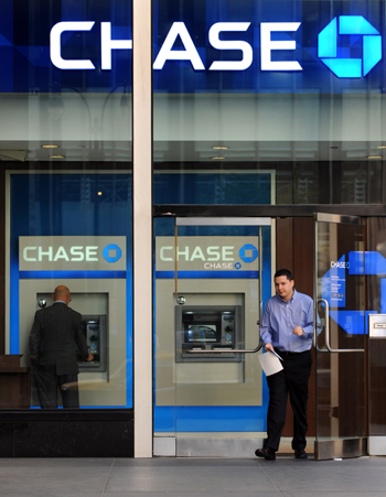 美國最大銀行摩根大通5月10日宣布旗下投資部門一項(xiàng)交易組合虧損20億美元,震驚全球金融界,讓英美等國銀行監(jiān)管呼聲再次高漲。 圖為2010年4月14日,一名男子從美國紐約一家摩根大通銀行營業(yè)點(diǎn)走出。記者