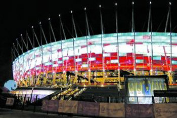 據介紹,2012年歐錦賽波蘭賽區(qū)有四個比賽場館,分別是位于華沙、格但斯克、波茲南和弗羅茨瓦夫市。目前,這4個比賽場館已經準備就緒,可投入使用。其中,華沙國家體育場距離市中心2公里,是波蘭國內最大的一個現代化體育場,是歐錦賽開幕式和主場比賽地,于2008年5月15日正式動工興建,歷時3年多,建設總投資近19.15億茲羅提(約合6.177億美元),共有58145個座位。