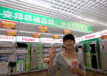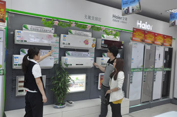 因為節(jié)能補貼政策實施,青島的尹小姐購買海爾1級能效變頻空調時少花了400元。資料照片 |