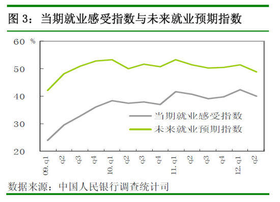 居民就業(yè)感受指數(shù)為40.1%,分別低于上季和去年同期2.2和0.6個百分點。居民未來就業(yè)預期指數(shù)為48.9%,分別低于上季和去年同期2.4和4.3個百分點,接近2009年以來的最低值。