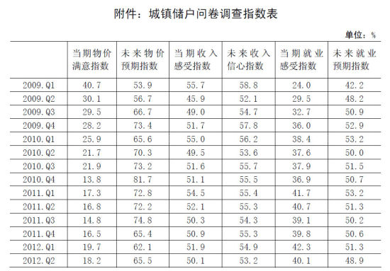 2012年第2季度,由中國人民銀行在全國50個城市進行的2萬戶城鎮(zhèn)儲戶問卷調(diào)查顯示: