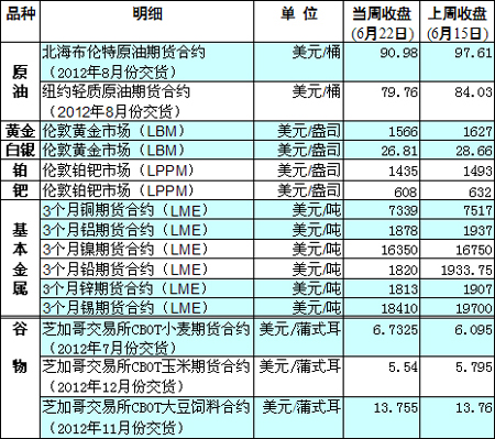 · 國際大宗商品期貨價格明細(xì)表[2012-06-18] 2012-06-18