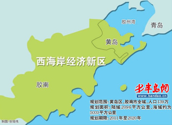 去年1月,國務院批準《山東半島藍色經濟區(qū)發(fā)展規(guī)劃》,山東半島藍色經濟區(qū)建設上升為國家戰(zhàn)略。繼而青島市委、市政府把西海岸經濟新區(qū)規(guī)劃建設納入藍色經濟區(qū)戰(zhàn)略的核心內容。今年1月31日,青島西海岸經濟新區(qū)黨工委、管委會正式成立,新區(qū)開發(fā)建設全面啟動。3月,青島市發(fā)布《青島西海岸經濟新區(qū)發(fā)展規(guī)劃》。規(guī)劃顯示,新區(qū)范圍為青島開發(fā)區(qū)、膠南市全域,陸域面積2096平方公里,海域面積約5000平方公里,常住人口139萬,規(guī)劃期限2011年至2020年。