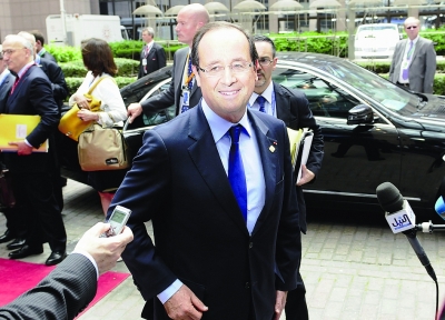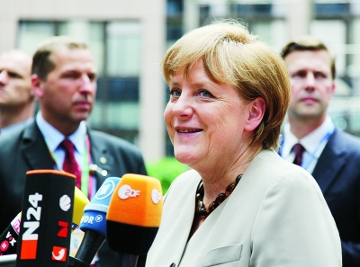 圖為默克爾(上)和奧朗德(下)分別抵達(dá)歐盟總部出席峰會(huì)。