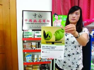 江蘇雪豹公司工作人員出示所購(gòu)蘋(píng)果公司“雪豹”操作系統(tǒng)教材 攝影 記者