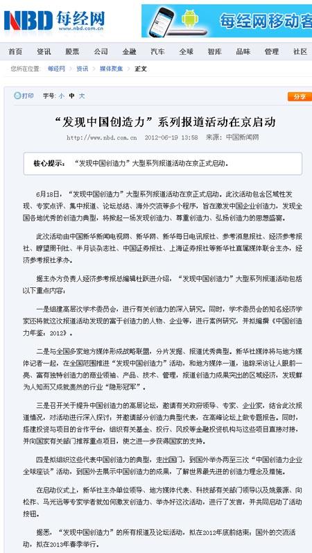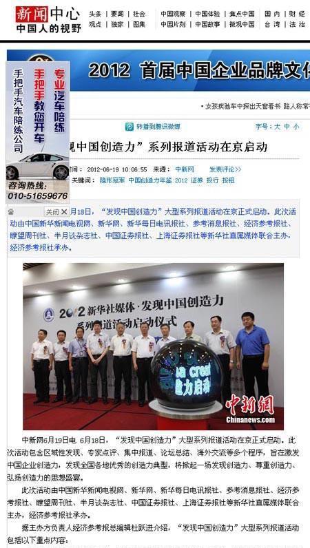 “發(fā)現(xiàn)中國(guó)創(chuàng)造力”系列報(bào)道活動(dòng)已于6月18日正式啟動(dòng),各大網(wǎng)站對(duì)活動(dòng)啟動(dòng)儀式紛紛進(jìn)行報(bào)道。