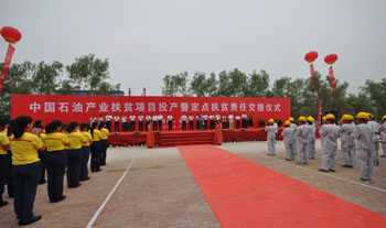 “中石油目前定點(diǎn)扶貧與對(duì)口支援涉及全國8個(gè)省區(qū)14個(gè)縣區(qū)。”中石油定點(diǎn)扶貧與對(duì)口支援領(lǐng)導(dǎo)小組副組長、總經(jīng)理助理李潤生在項(xiàng)目交接儀式上說,其中從2007年開始定點(diǎn)扶貧河南兩縣——臺(tái)前縣和范縣。幾年來,中石油把改善群眾基本生產(chǎn)生活條件作為扶貧工作著力點(diǎn),累計(jì)投入3000萬元,援建了中醫(yī)院、技能培訓(xùn)中心、中心小學(xué)、通村道路、飲水工程等10個(gè)民生工程。