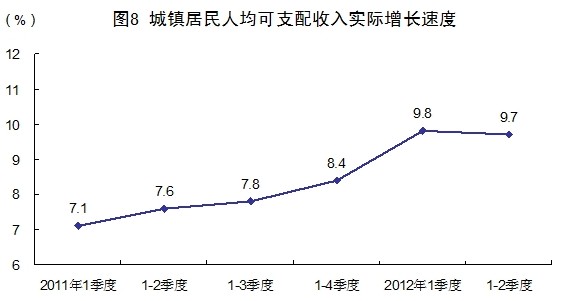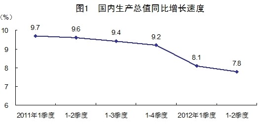 2011年各季度及2012年一、二季度GDP環(huán)比增速分別為2.2%、2.4%、2.3%、1.9%、1.6%和1.8%。