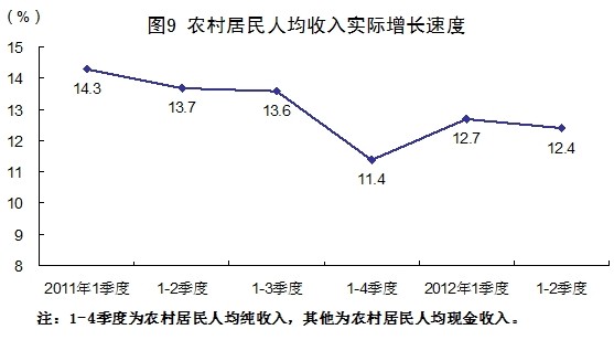 九、城鄉(xiāng)居民收入較快增長,農(nóng)村居民收入增速快于城鎮(zhèn)