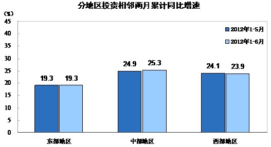 分地區(qū)看,1-6月份,東部地區(qū)投資73213億元,同比增長19.3%,增速與1-5月份持平;中部地區(qū)投資40478億元,增長25.3%,提高0.4個百分點;西部地區(qū)投資36165億元,增長23.9%,回落0.2個百分點。