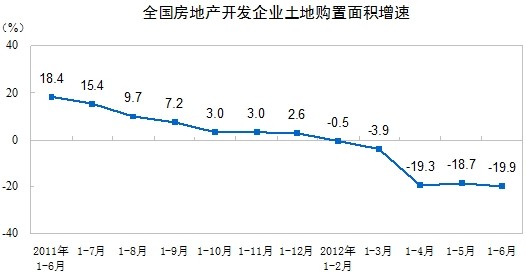 1-6月份,房地產(chǎn)開發(fā)企業(yè)土地購置面積17543萬平方米,同比下降19.9%,降幅比1-5月份擴(kuò)大1.2個(gè)百分點(diǎn);土地成交價(jià)款3441億元,下降13.3%,降幅擴(kuò)大3.3個(gè)百分點(diǎn)。